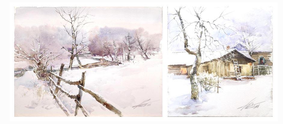 Цель: Опираясь на референс и карандашный набросок, пишем вместе с художником зимний пейзаж. Следуя за направлениями изгороди и ручья, уводим зрителя в глубь листа, в какую-то тайну, создавая этим движением интригу. ВАЖНО! Работа ведется по готовому карандашному наброску, подготовьте его заранее из домашнего задания. Продолжительность урока 1 час 32 минуты.