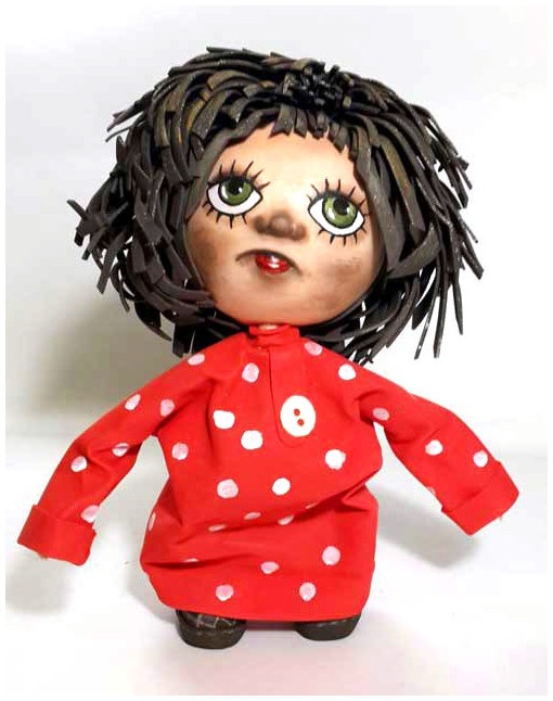 В видео-мастер классе Вы узнаете как сделать эту милую мордашку с курносым носиком и капризными губками, русскую рубаху, лапти, портянки, и эту огромную лохматую шевелюру.
