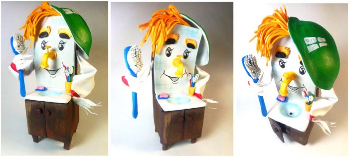 Он почти живой - у него наклоненное туловище, кривые ноги, правая рука держит большую зубную щетку и может изгибаться.
