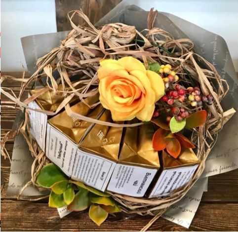 Бизнес-идея состоит в том, что вы изготавливаете композиции из чая и конфет. Такие букеты могут быть выполнены в любой тематике, например, новогодней или любой другой.