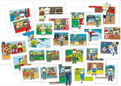 Игра для детей от 3-х лет, подходит при подготовке к школе. Фон на основах характерен для какой-либо профессии, необходимо разместить на фон человека соответвующей профессии. Основы и карточки заламинированы.