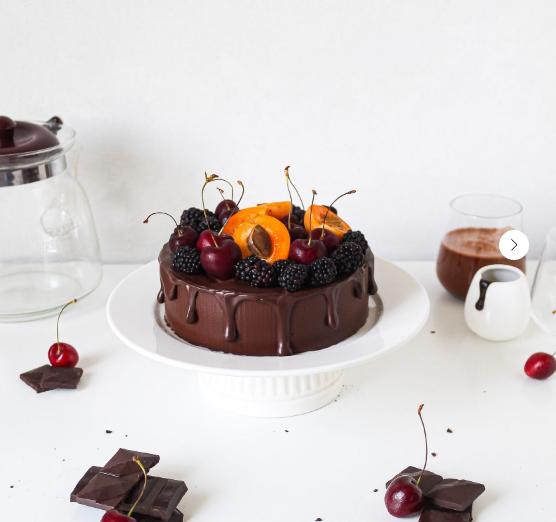 Насыщенный шоколадный торт с брауни бисквитами и шоколадным ганашем, приготовленные на веганском шоколаде без лактозы и сахара, а так же сочная вишневая начинка.