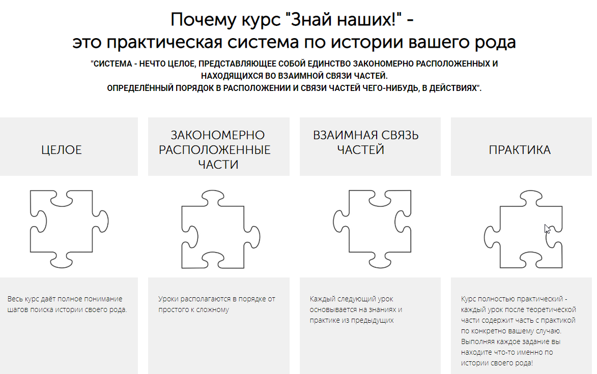 Вот почему мои курсы очень четкие, конкретные, насыщенные детальными инструкциями и “секретами” общения с государственными органами. Выполняя все мои задания и применяя все инструкции, вы обязательно придёте к результату. Я помогаю выстраивать систему, в которой вам понятен каждый следующий шаг в поиске предков.
