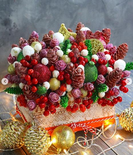 Рады поделиться с вами однои? из тре?х Новогодних композиции? с нашего нового курса Happy New Year (всего будет 3 букета и 3 композиции)