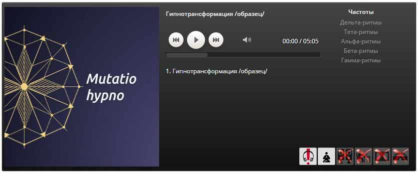 Воздействие мощных стимулирующих ритмов в состоянии, близком к гипнотическому трансу позволяет воздействовать на те зоны мозга, которые не поддаются стимуляции обычными методами нейроакустической медитации. Программа состоит из двух частей: первые 20 минут идет постепенное погружение в состояние релаксации, покоя. При достижении такого состояния начинается фаза активной стимуляции, произойдет постепенное нарастание ритмов от низкого дельта-ритма до высокого гамма-ритма. В программе использованы самые мягкие, практически неслышимые ухом аудиотехнологии, что позволило сделать программу крайне легкой для восприятия. Но несмотря на кажущуюся легкость программа «Гипнотрансформация» является мощным инструментом трансформации сознания. Она способна проникнуть в очень глубокие слои подсознания и будет полезна для широкого круга слушателей.