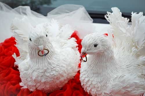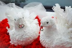 Композицию из двух голубей можно использовать как в интерьере, так и в качестве украшения для свадебной машины (фом не боится грязи и влаги).
