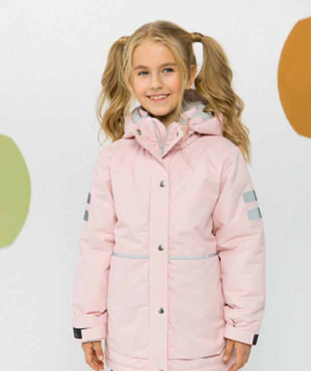 Куртка детская «унисекс» размер 72 рост 140, прямого силуэта, на утеплителе и подкладке, длиной ниже линии бедра. Перед отрезной по линии талии; с центральной бортовой застежкой на тесьму молнию, с ветрозащитными планками. На планке расположены кнопки для фиксации. Рукав длинный, втачной, трехшовный, ширина низа рукава регулируется притачной патой и имеет внутреннюю трикотажную манжету. На переде расположен накладной карман с объемной обтачкой. Горловина обработана воротником-стойкой.