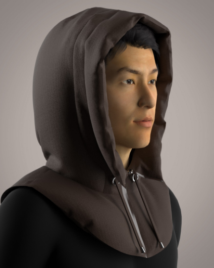 Выкройка капюшона для мужчин. Капюшон умеренного объема, на утеплителе, шлемовидный, с притачной планкой; с отрезной центральной частью; в переднем срезе капюшона (за планкой) обработана скрытая кулиска с плавной регулировкой прилегания при помощи шнура. Для выведения на лицевую сторону концов шнура установлены люверсы. Манишка и капюшон с центральной застежкой на тесьму «молния».