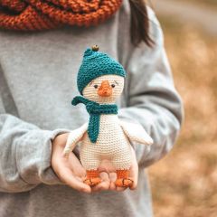 МК представлен в PDF формате, включает описание вязания, сборки и оформления гусика, а так же описание вязания колпачка и шарфика. Все процессы сопровождаются фото.