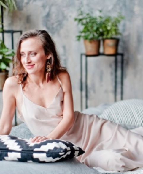 Элегантная сорочка на тонких бретельках, длину и декор можно варьировать.