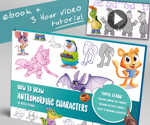 Электронная книга с туториалами (112 страниц) и 3 часами видеоматериала о том, как рисовать антропоморфных персонажей-животных. В этой книге я иду от базовых знаний к более сложным. Так что она действительно хорошо подходит для начинающих, а также для более опытных художников. Когда вы хотите научиться рисовать, начинать с животных - это действительно здорово. Благодаря разным формам и видам. Я также даю несколько упражнений, которые вы можете начать делать. Вы можете пройти этот курс как с помощью бумаги и карандаша, так и с помощью планшета или ПК.