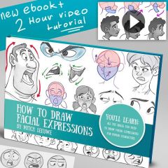 Электронная книга с учебными пособиями и 2 часами видеоконтента о том, как рисовать выражения лиц.