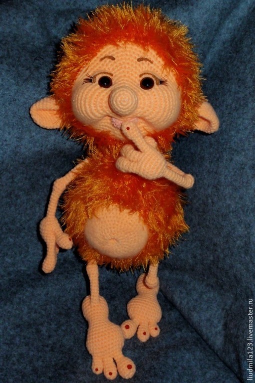 Уровень сложности – немного выше среднего. Сложность заключается в вязании пушистой пряжей и вязании конечностей вокруг проволоки.