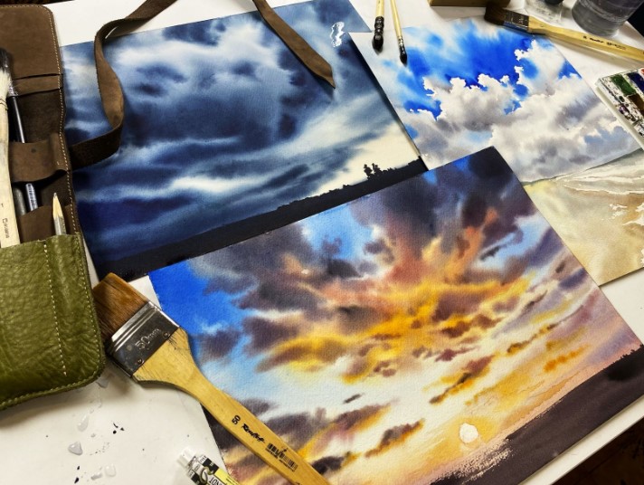 На мини-курсе «Небеса» вы познакомитесь с приемами, которые помогут реалистично и интересно показывать различные состояния неба в масляной и акриловой живописи, а на мини-курсе «Акварельное небо» научитесь писать великолепные облака в технике по-мокрому.