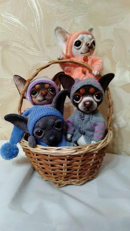 [Игрушка] Чихуашки-близняшки - МК по вязанию крючком+одежда спицами. (Лебедева Людмила)