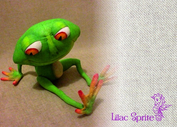 Благодаря проволочному каркасу, Квакуш прекрасно сохраняет эту необычную для текстильной игрушки позу.