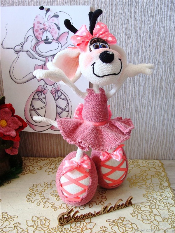 Вы получите мастер-класс по вязанию крючком Балеринки (мышь белая):