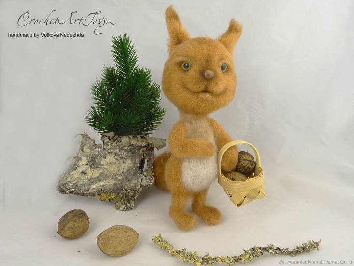 Сегодня я готова поделиться с Вами своими наработками, предлагаю Вам мастер-класс в формате pdf по вязанию крючком бельчонка Летяги. Рост готовой белки из заявленных материалов 26 см(без учета ушек). Благодаря проволочному каркасу и шплинтовому креплению головы, ножки, ручки и голова бельчонка подвижны. Возможен вариант вязания без шплинта полностью на каркасе.