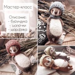 Спешу сообщить, что наконец готов мой МК на бурундука! Он включает в себя описание самого бурундучка, шапочки и шарфа (последние вяжутся спицами). Формат файла – PDF. Постаралась его сделать ооочень подробным, большое внимание уделила процессу перехода от одного цвета к другому, чтобы даже новичкам было понятно.