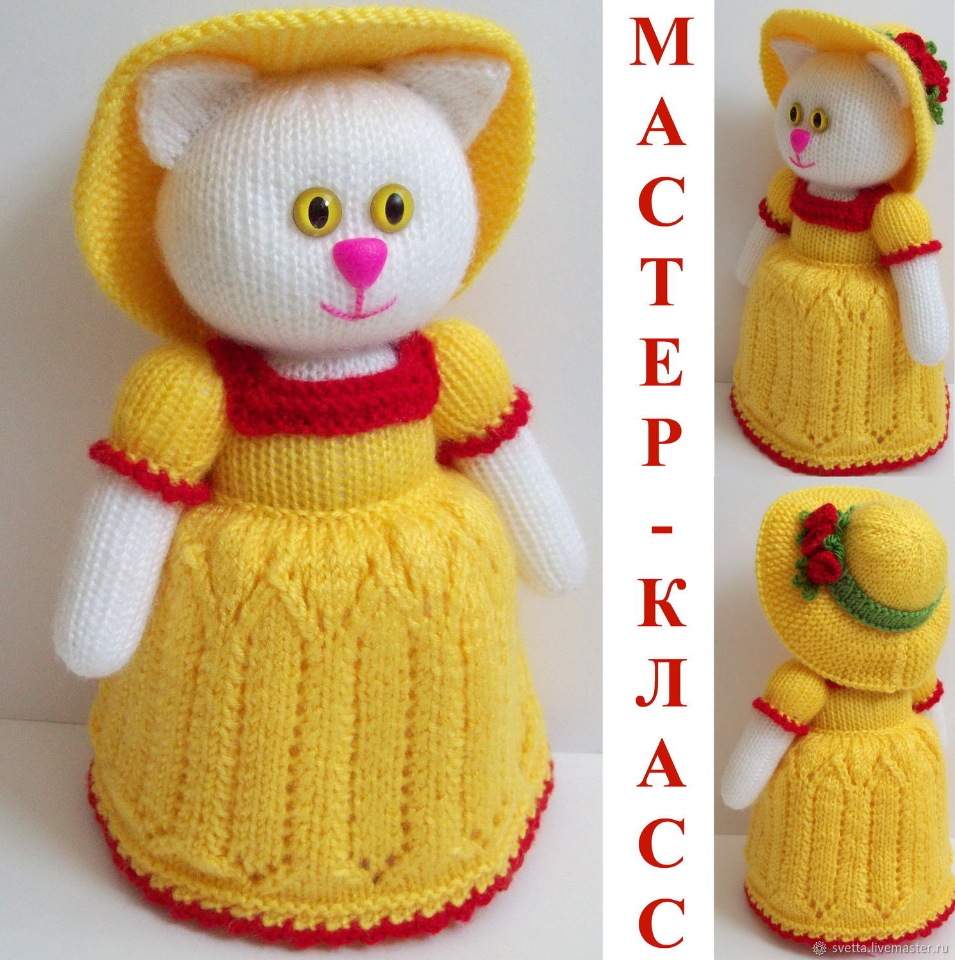 Предлагаю Вашему вниманию мастер-класс по вязанию спицами нарядной кошечки-красавицы.