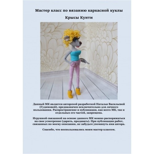 Мастер класс по вязанию каркасной зверо-куклы крысы Кунти.