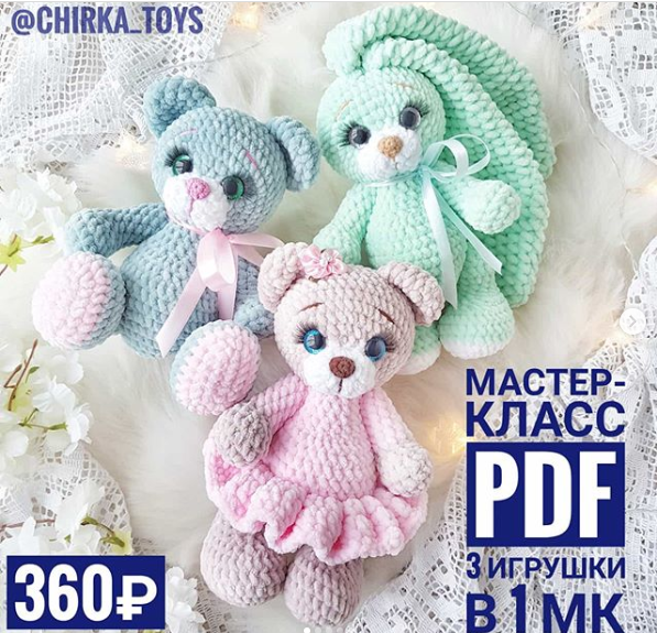 По одному МК Вы можете связать чудесную Медведицу, возможно захотите нарядить ее в платье, а может вообще Вы решите связать Зайку с мягкими длинными ушками! Итого у Вас получится целых игрушки.