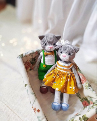 Вы получите: мастер-класс в PDF формате, состоит из 37 страниц, включает в себя подробное описание вязания котика, кошечки и гардероба для них (кофточка, сандалики, юбка, штанишки, бантик-бабочка) с пошаговыми фото процесса.