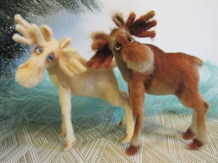 Для Рыжего лося брала на рога и копыта пряжу более темного оттенка. У Белого лося все детали вязала одним цветом.