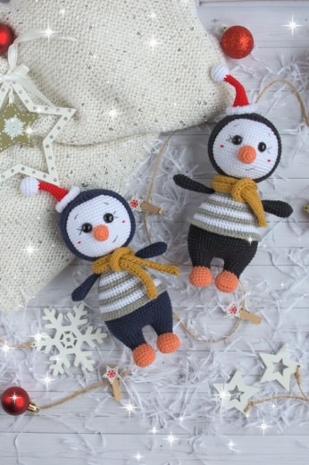 - состоит из 22 страниц пошагового описания вязания, оформления и сборки пингвиненка, колпачка и шарфика для него;