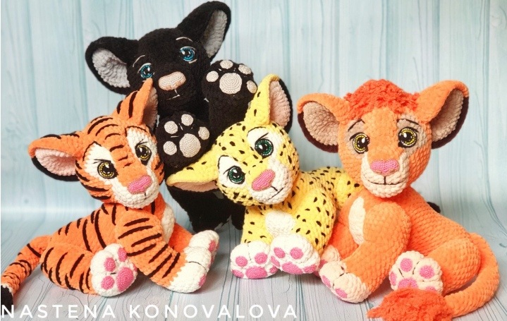 [Игрушки] Мастер-класс 4 игрушки : Тигруша, Леопардик, Пантерка, Львеночек (Анастасия Коновалова)