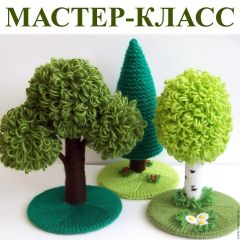 Предлагаю Вашему вниманию мастер-класс по вязанию спицами деревьев, которые могу послужить декорациями для кукольного театра или стать самостоятельными интерьерными игрушками.