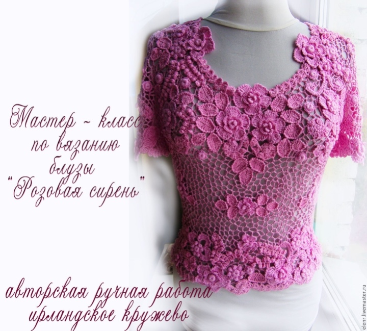 Ирландское кружево. МК по вязанию блузы 'Розовая сирень' PDF («Ирландское кружево» Елена Рябова)