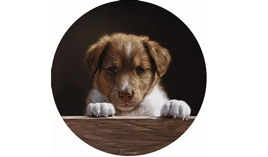 Рисуем очаровательного щенка в эффектном освещении. Вы узнаете как рисовать мягкую но фактурную шерсть малыша, создавать объем, переходы из цвета в цвет, как добиться похожести животного