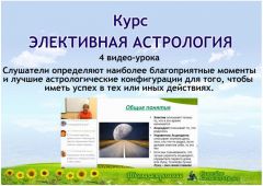 Вы научитесь определять наиболее благоприятные моменты и лучшие астрологические конфигурации для того, чтобы иметь успех в тех или иных действиях.