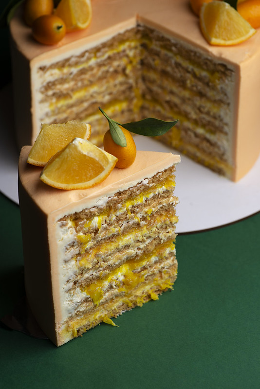 Этот торт с богатым и освежающим апельсиновым вкусом, и четырьмя текстурами начинки: сочные медово-апельсиновые коржи, нежная апельсиновая паста, крем со вкусом апельсина, апельсиновый курд и кофе с апельсином.