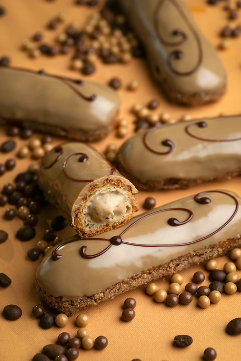 Этот эклер имеет классическое заварное тесто с хрустящей текстурой кракелина сверху. Это сделает этот эклер более интересным и придаст ему вкусный запеченный вкус. Мы наполним этот эклер классическим кофейным кремом. Чтобы сделать вкус более интенсивным, мы добавим к этому рецепту шрамализ шугер.