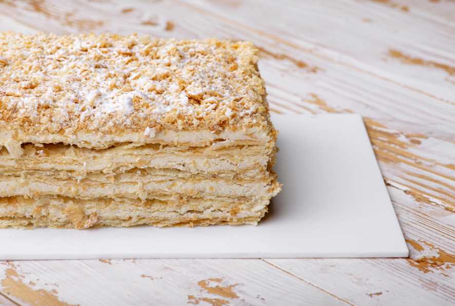 Торт Наполеон – один из вкуснейших десертов, который любят во всем мире. В Италии и во Франции его называют «Тысяча слоев», а в Бельгии и Нидерландах есть похожее по рецепту пирожное «Томпус». В 1912 году в России готовились к празднованию столетия победы над Наполеоном, и по этому случаю кондитеры создали новое пирожное треугольной формы из слоеного теста с заварным кремом, приготовленным на молоке и сливочном масле.