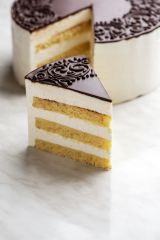Этот торт был одним из самых популярных десертов в нашем детстве. Классическая версия торта состоит из суфле на основе агар-агара, одного слоя бисквита и тонкого слоя шоколадной глазури. В этой версии торта 3 слоя бисквита вместо одного, поскольку мы все любим печеные текстуры. Кроме того несколько слоев бисквита дают нам более красивый разрез и делают торт менее сладким.