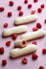 Мы сделаем этот эклер из классического заварного теста и классического кондитерского крема. Яркий акцент в этом эклере создаст малиновый конфит, который создаст вкусный контраст. Мы покроем этот эклер белой глазурью с ванильными семечками.