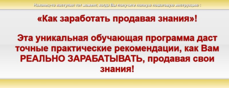 Вы убедитесь сами, что именно для Вас, продавать знания и зарабатывать на этом РЕАЛЬНО!