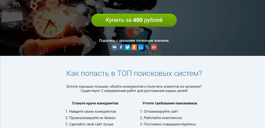 • Работа с конкурентами. Как найти своих конкурентов в Интернете, ведь часто это совершенно другие компании, нежели в офлайне. Разберетесь, как провести качественный анализ их сайтов. Поймете, в каком направлении необходимо развивать и дорабатывать свой ресурс, чтобы превзойти другие компании.