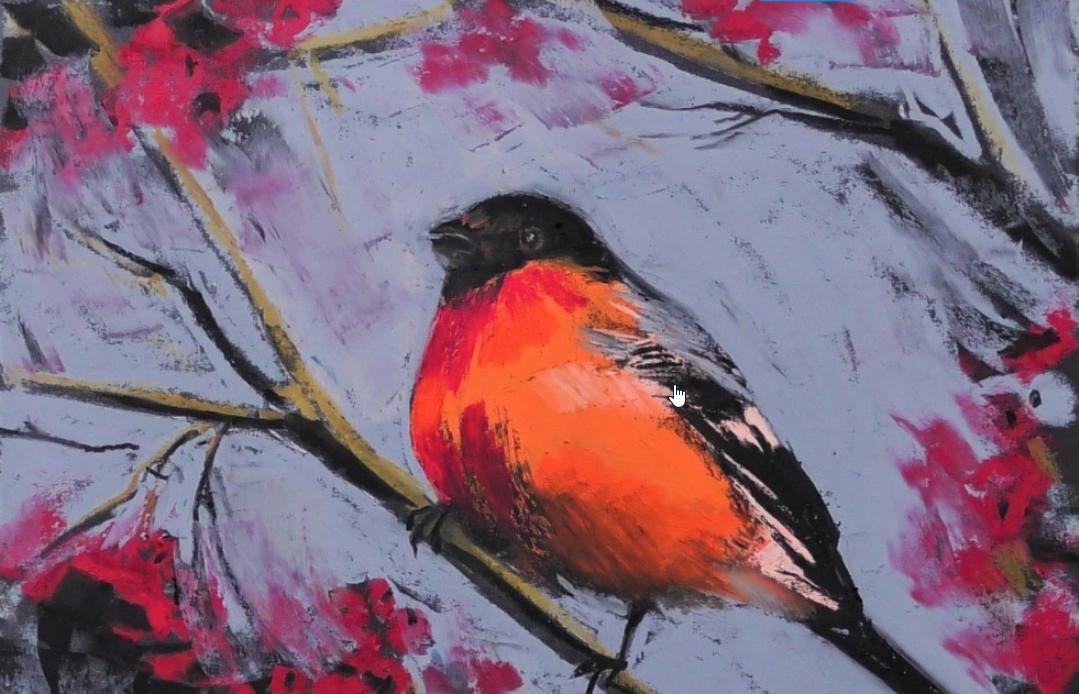 Создаем масляной пастелью красногрудого снегиря вместе с Женей Мельниковой