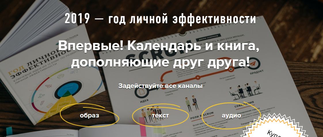 И это будет не просто инфографика ценного концепта, такая как SCRUM, ЛИН или пирамида Минто. Вы прочтёте и прослушаете ключевые идеи автора концепта и его ещё более подробное описание в сборнике книг. Будут задействованы все ваши каналы восприятия, информация подаётся через образ, текст и аудио.