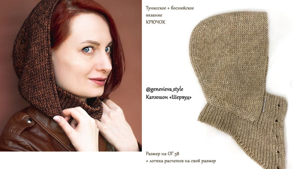 в он-лаи?не даны 2 с лишним часа видео, где я вяжу капюшон от начала и до конца. А также схемы, выкрои?ки и логика расчета на свои? размер.