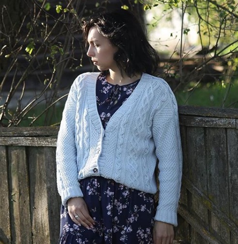 Кардиган вяжется снизу вверх. Рукава вывязываются отдельно и вшиваются с помощью иглы.