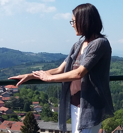 Легкий вязаный кардиган Dust Silver выполняется спицами сверху вниз из льняной пряжи.