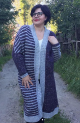 Для вязания данного кардигана Вам понадобится пряжа «Паэлла» 150/100 грамм, в количестве 850-900 грамм и серого твида 200/100 грамм, в количестве 300-400 грамм.