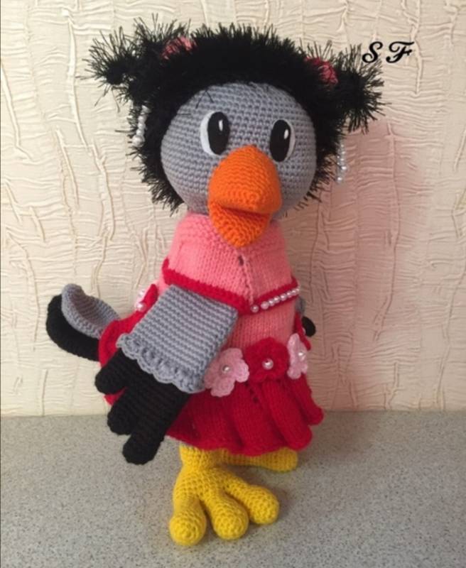 Мастер класс в PDF формате на 22 стр, содержит 39 фотографий и подробное описание процесса вязания крючком, а так же описание вязания спицами платья.Рост игрушки 24 см.