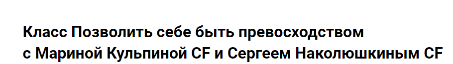 Класс Позволить себе быть превосходством (Марина Кульпина, Сергей Наколюшкин)