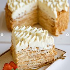 Все компоненты вместе выводят представление о классическом медовом торте на совершенно новый уровень — это уже не привычный, а очень изысканный десерт, но со знакомым вкусомМедовик не требует дополнительного декора, но при желании его можно выравнивать кремом. Собранный и уже декорированный десерт хранится в замороженном виде до 30 дней, благодаря авторским техникам от Шефа.
